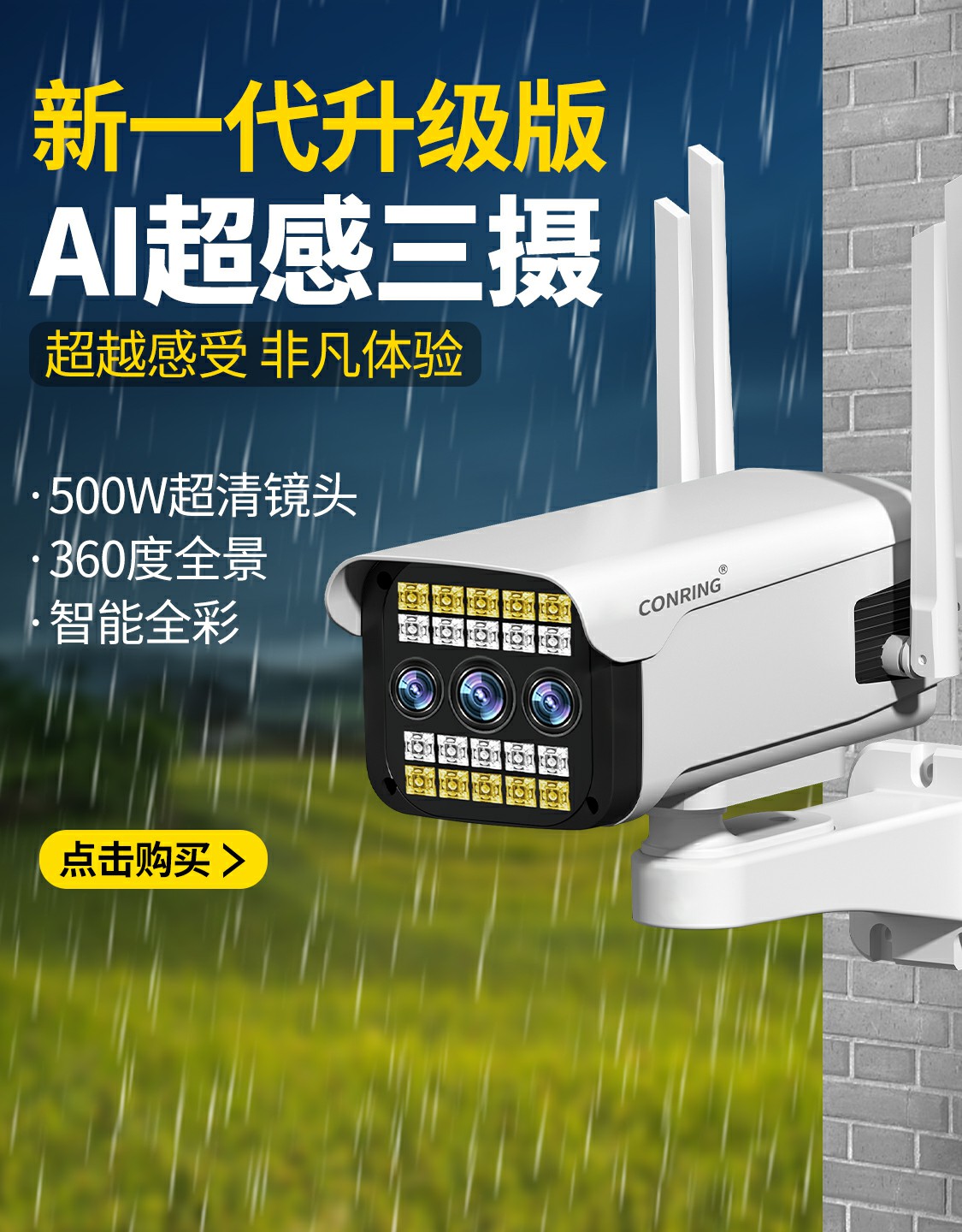 CONRING防犯カメラ家庭用动机室外防水无线电视线wifi网络4 g智能手机里动机用户360°PanoramaspinHD监视工作第十代WiFi续航版+360°昼夜无线电航続500 W画素+128 G卡送