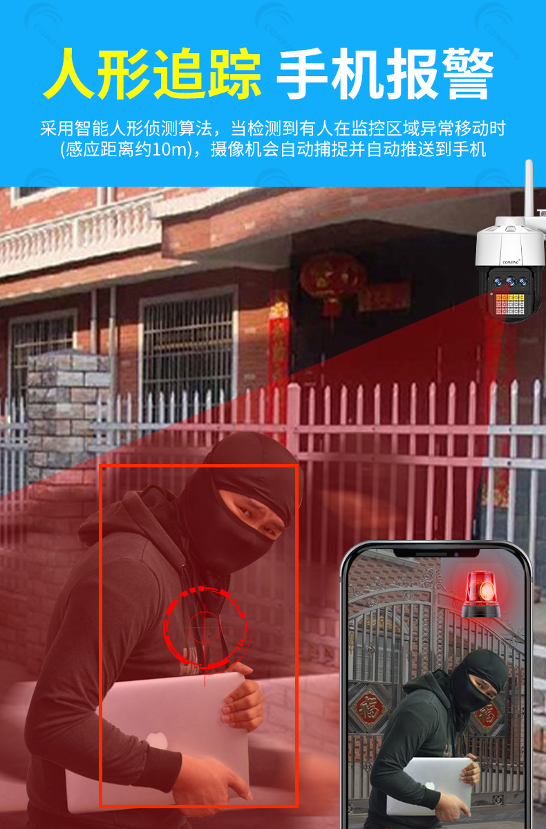 | 商品名称 | CONRING太陽光能源防犯カメラ監視家庭用オートドア360°4 Gスマホリモ-トワイヤレスwifi無網無電屋外防水HD夜視モニタ4 G旗艦版+50 AH大電池+30倍ズモ-ム300 W超级公寓画素+音声対話+人形追跡+128 Gカード |
