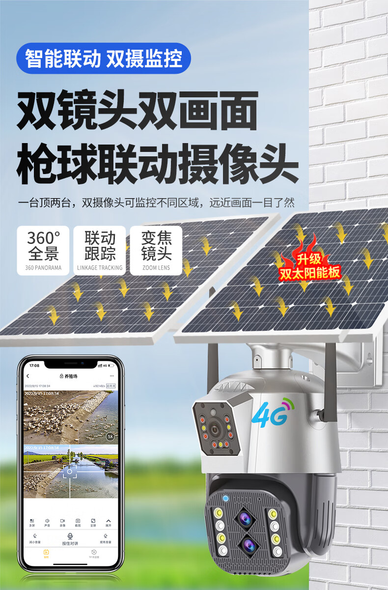 CONRING 4G太陽光エネルギー防犯カメラ監視アウトドア超HDWiFiワイヤレスモニター家用室外无电无网スマホリモートで一台顶两台 太陽光エネルギー4G款-128GB内存 太陽光エネルギー板50W 电池容量30000毫安