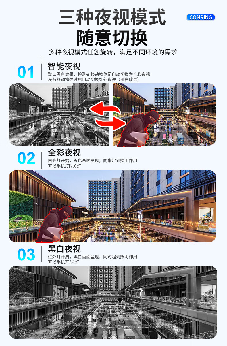 CONRING 太陽光エネルギーワイヤレス4G防犯カメラアウトドア不插电无网室外HD夜視360°スピン无死角球形モニターリモートで操控 【4G旗舰版】800W升级+50AH电池+超长待机